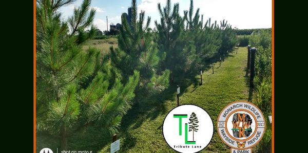 There is 20 Norway Pine That I bought from one of my top 3 favorite non-profits Trees For Tomorrow and planted them all here at what I call Tribute lane . I came up with a way to help support my non profits by letting people claim each one of these trees by donating what ever they wanted to my favorite non profits and being able to claim a tree in Tribute to or honor of someone they care about.
